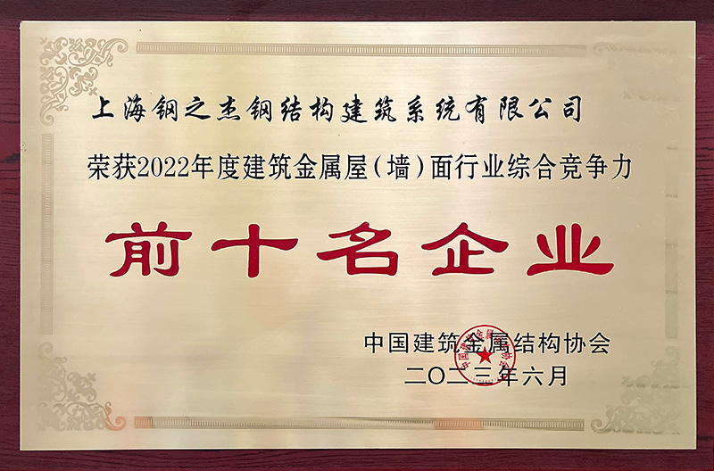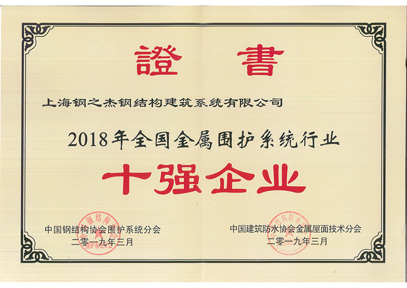 全國金屬圍護系統(tǒng) “十強企業(yè)”