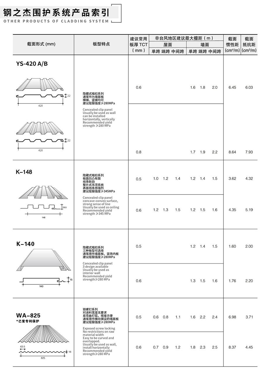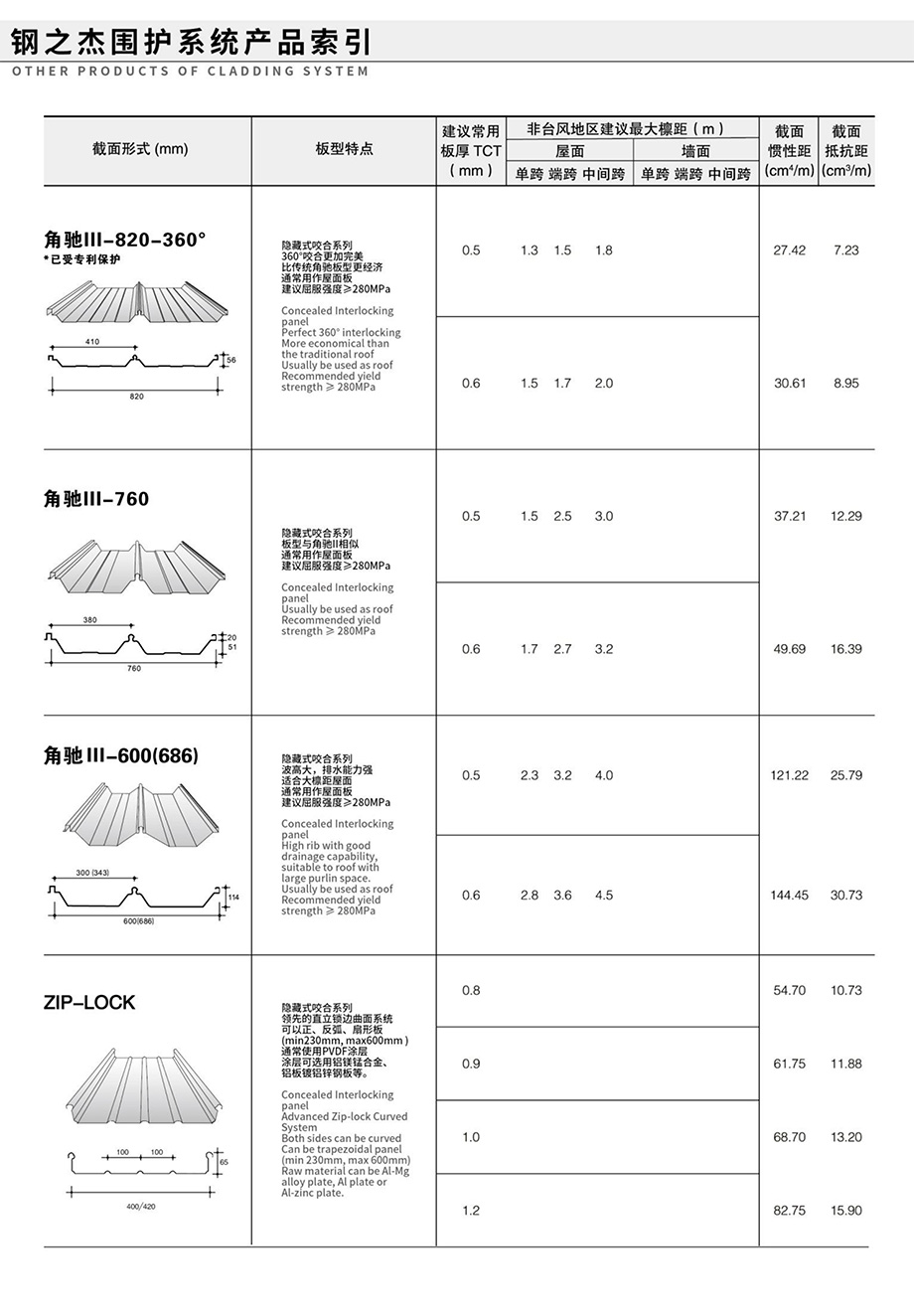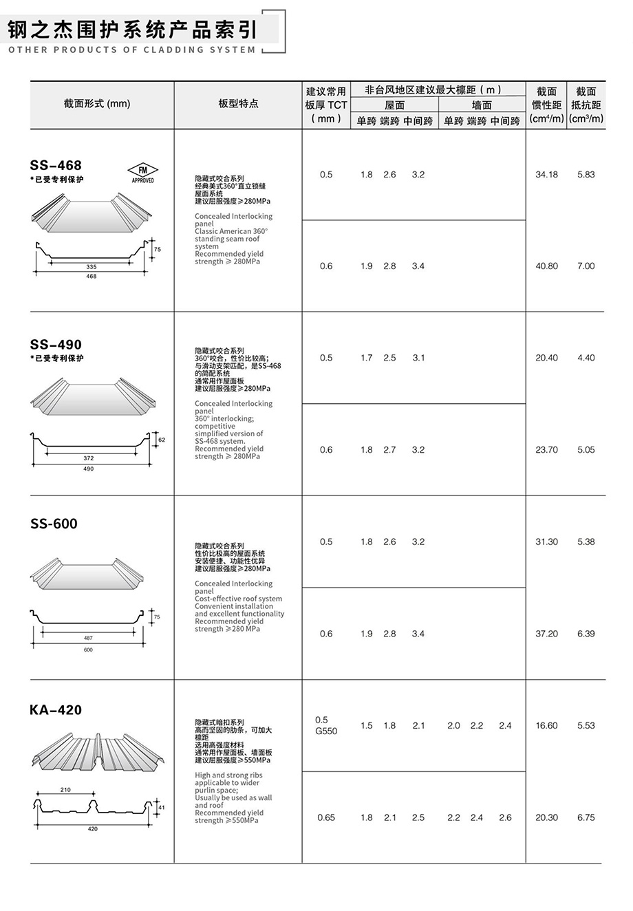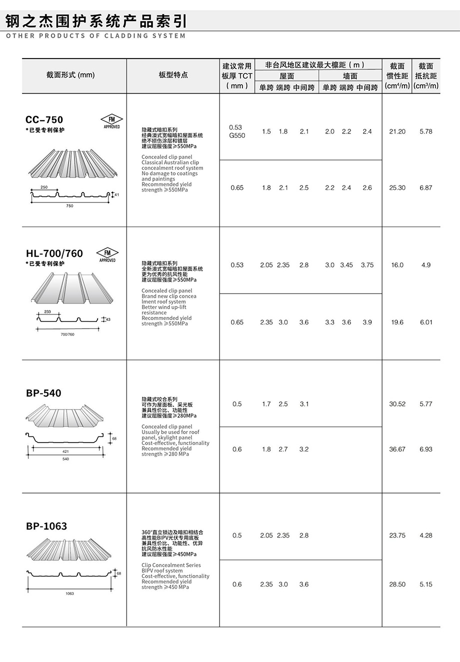 領先的預制金屬屋(墻)面和樓承板系統產品索引