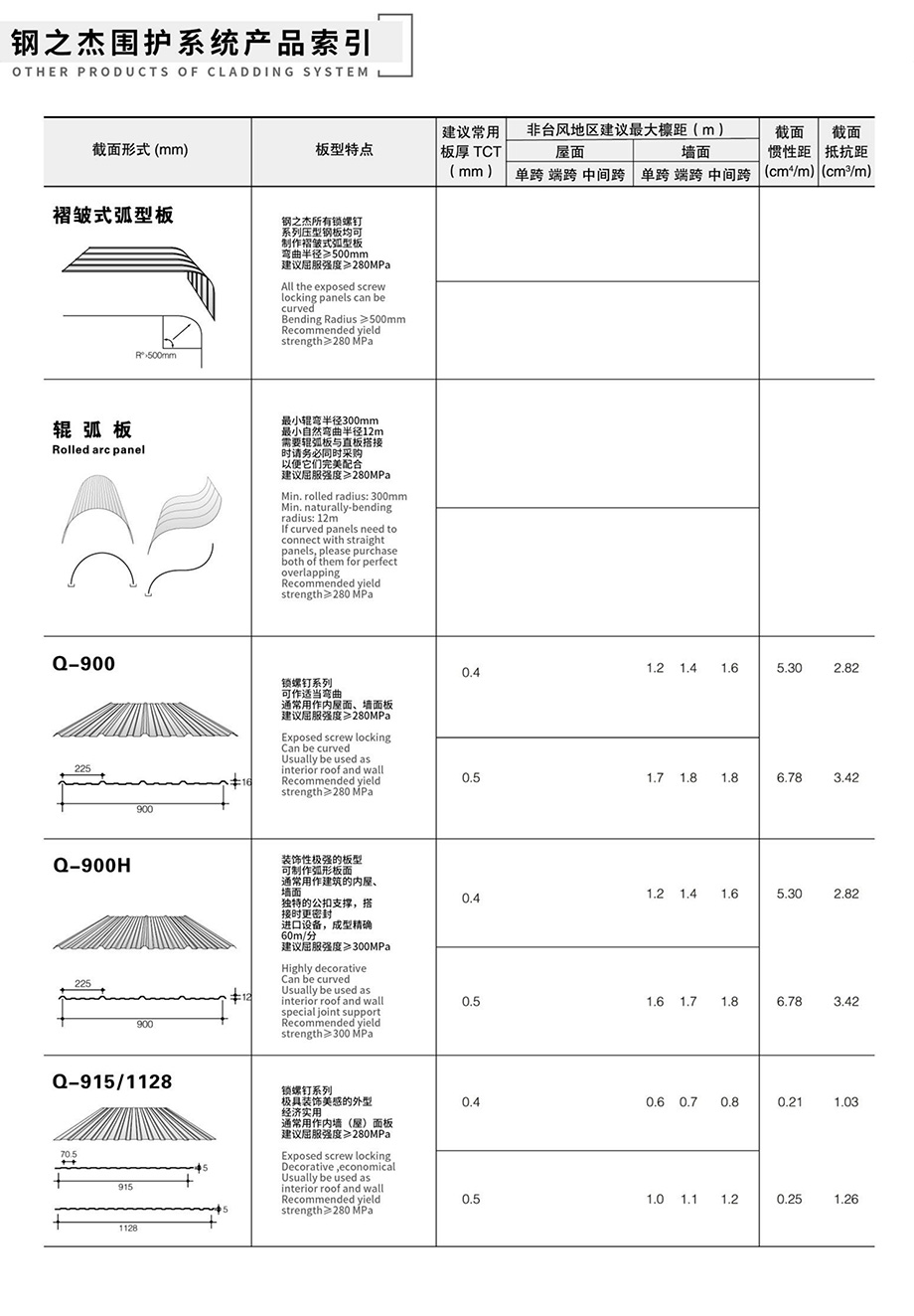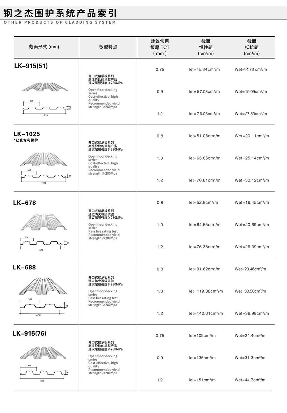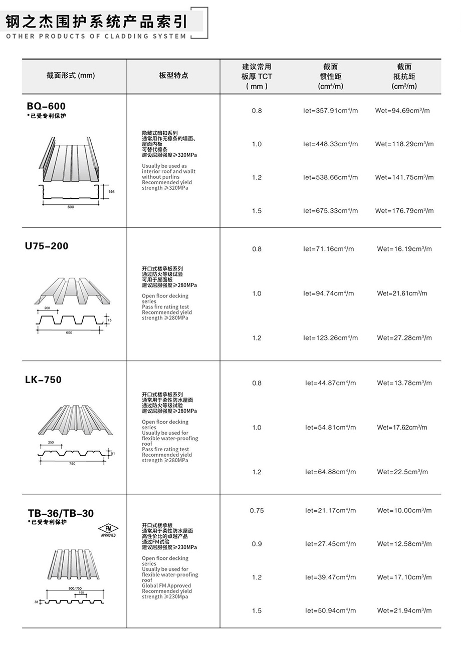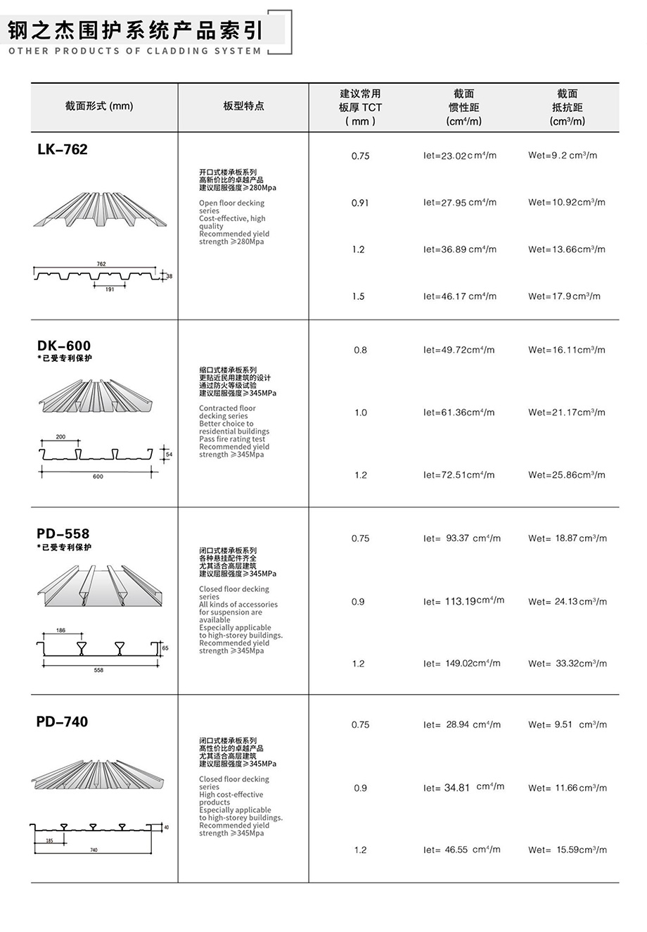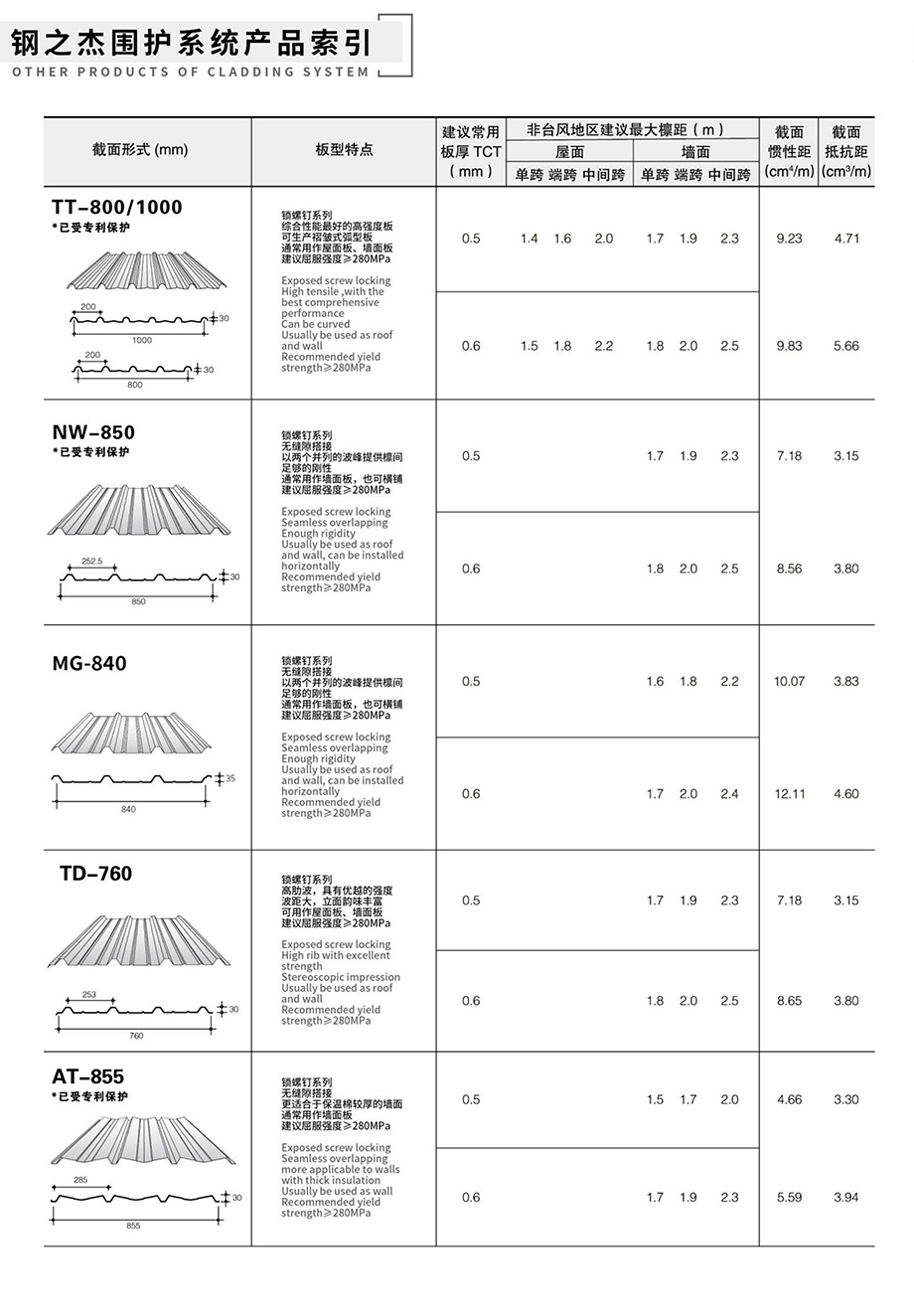 領先的預制金屬屋(墻)面和樓承板系統產品索引