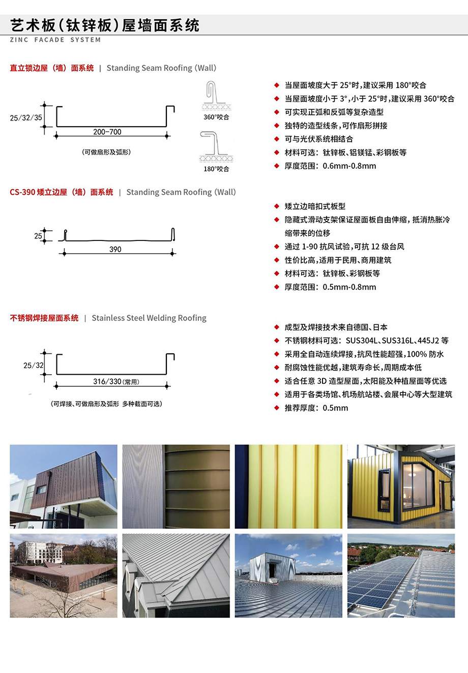 藝術(shù)板(鈦鋅板)屋墻面系統(tǒng)